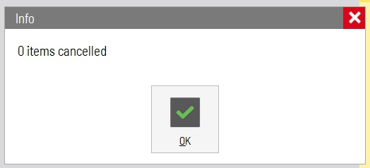 4) Click the 512 menu to eliminate some issues that were sitting in the queue of the system. The picture below shows that zero item got cancelled. That is because all my lanes work normally. In your case, you may see the number of items that got cancelled. These items prevented the lane to be open.